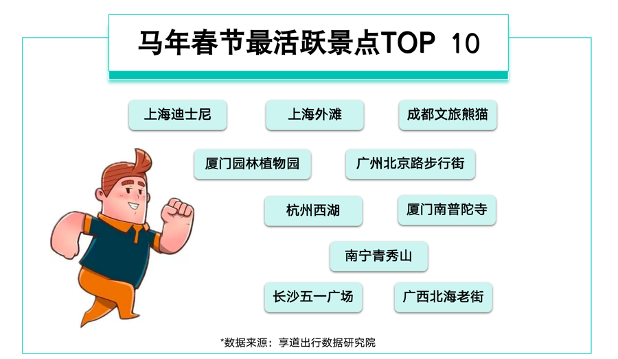 从享谈出行宇宙已开城市景区关系出行需求来看,上海迪士尼、外滩,成齐大熊猫繁育基地(文旅熊猫)、厦门园林植物园、广州北京路走路街、杭州西湖、厦门南普陀寺、南宁青秀山、长沙五一广场、广西北海老街等10处地标景点、着名买卖街用车需求高企,正以丰富多彩的年俗主题作为引诱市民游客赶赴打卡体验。